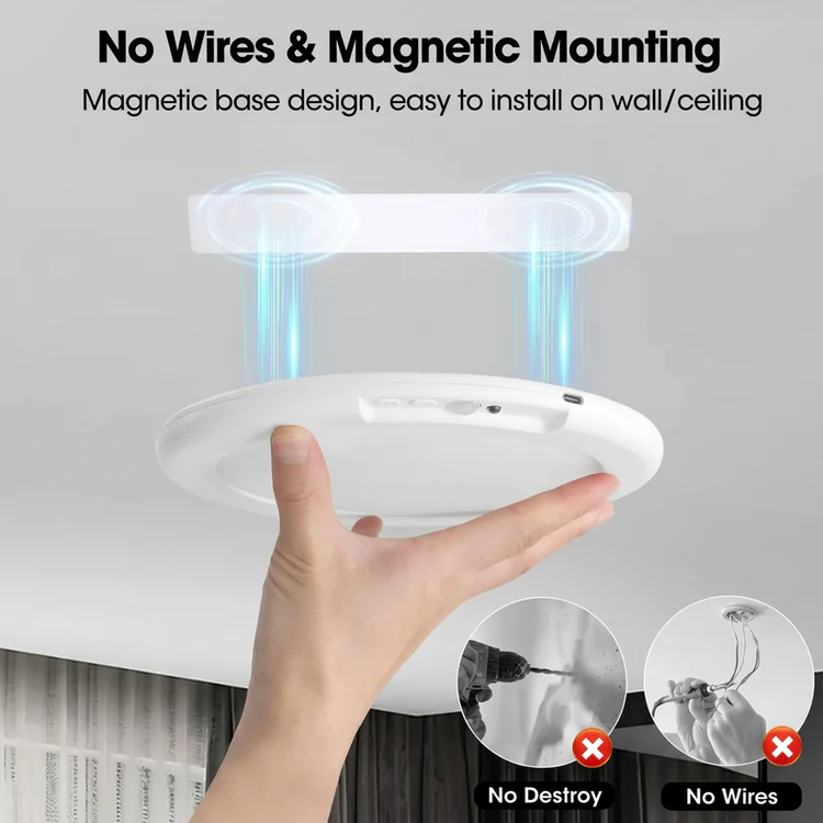 Peel the adhesive backing and press the magnetic base onto any clean surface. No drilling, no wall damage.
